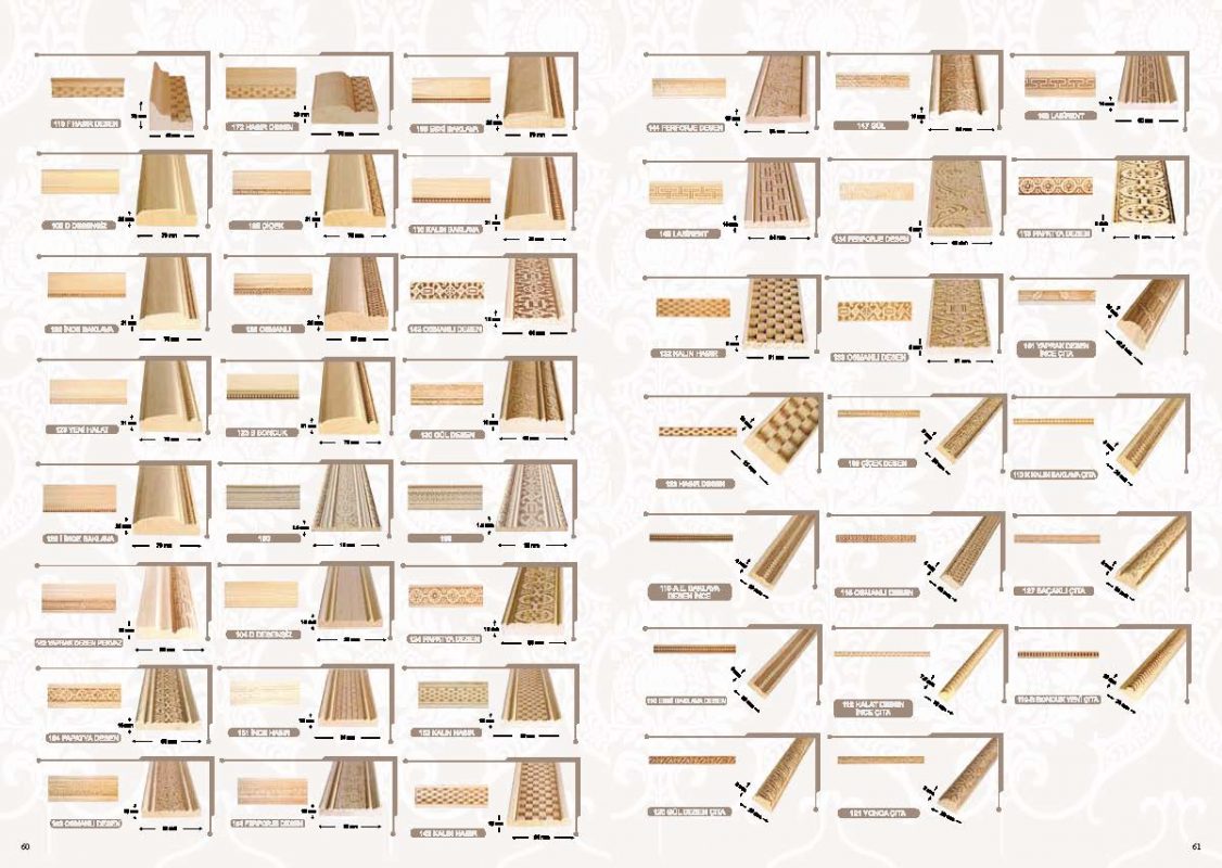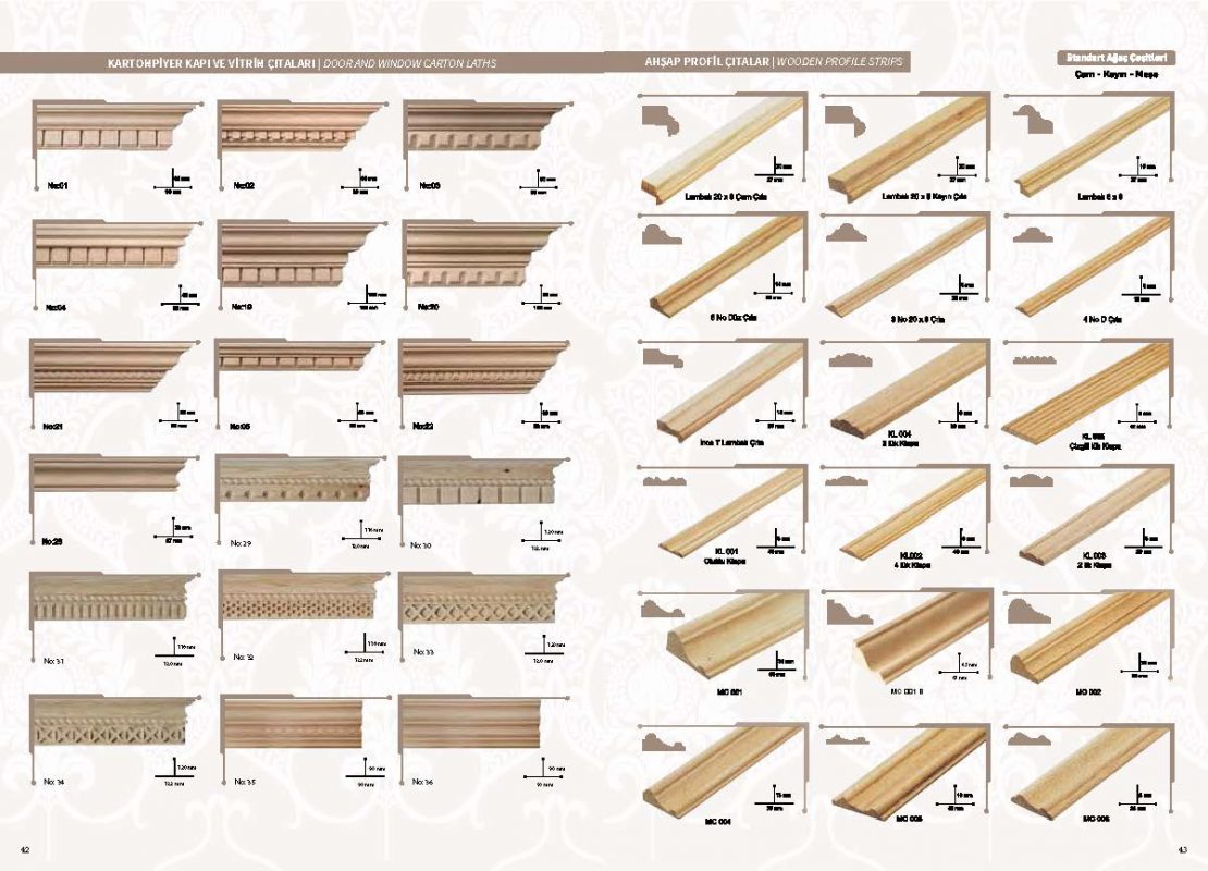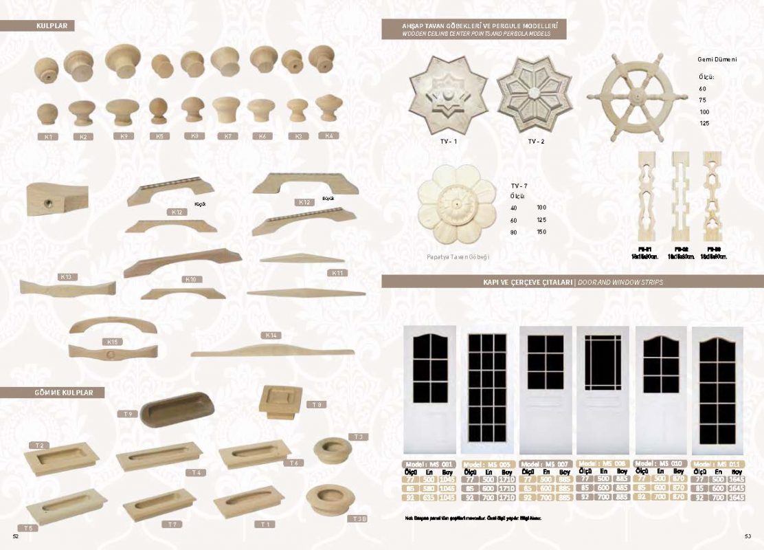 Mobilya kapı ve iç mekan dekorasyonlarında kullanabileceğiniz ahşap oyma torna ve profil çıta gruplarıyla yüksek kalite estetik tasarımlarıyla dikkat çeken ürünlerimizle özel tasarım çizim ve projelerinizde usta ve malzeme desteğimizle her zaman hizmetinizdeyiz